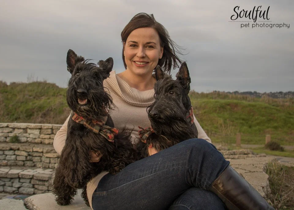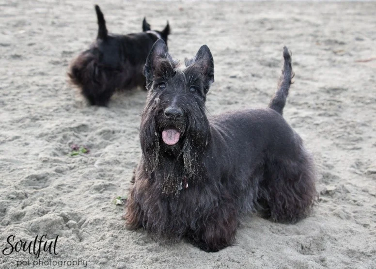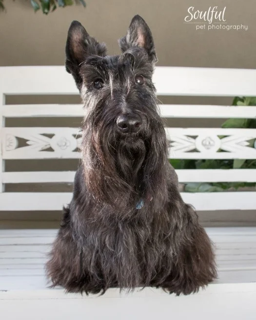 Muddy and Tuesday are the names of two adorable black Scottish Terriers that did a photo session with me. Since their mom wanted outdoor photos we had to reschedule a few times because of rain, but finally we got a beautiful clear day. The girls were freshly groomed and looking spiffy so first we got some portraits of them on their front porch.